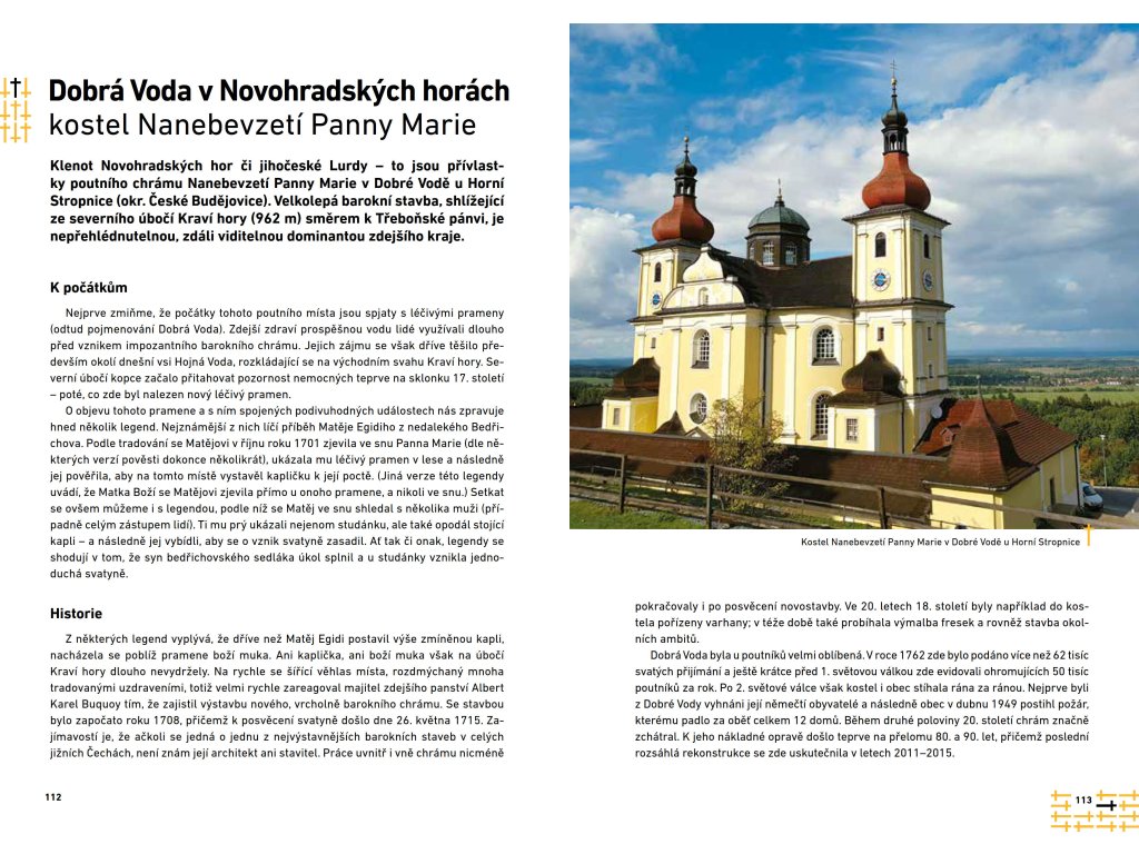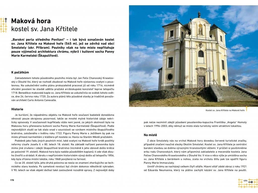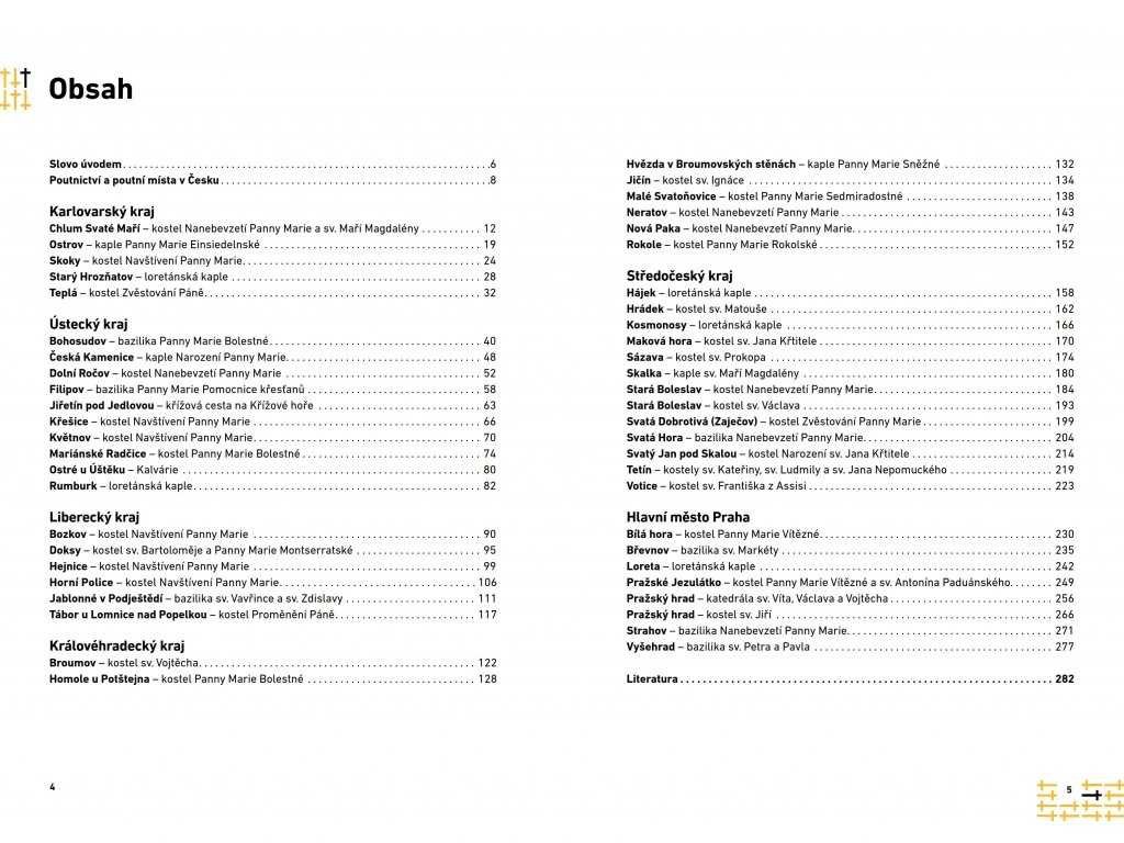 U každého poutního místa je uvedena zakladatelská legenda a stručná historie, následovaná důkladným popisem současného stavu a vybavení. Výklad zpestřují historické zajímavosti či souvislosti, které návštěvníkům zůstávají jinak nezřídka skryty. Jednotlivá hesla jsou doplněna unikátními fotografiemi zachycujícími současnou podobu nejen exteriéru, ale především interiéru daného objektu. Autor, vzděláním církevní historik, prostudoval nejnovější odbornou literaturu a pojednaná místa osobně navštívil. Díky tomu jsou texty v knize navýsost aktuální, oproštěné od nesčetněkrát opisovaných zastaralých údajů. Výsledkem pisatelova letitého úsilí je průvodce, který v současné tuzemské knižní nabídce nemá obdoby. Poutní místa Česka jistě potěší jak poutníky a praktikující věřící, tak všechny zvídavé turisty i obdivovatele umění a dějin naší země.